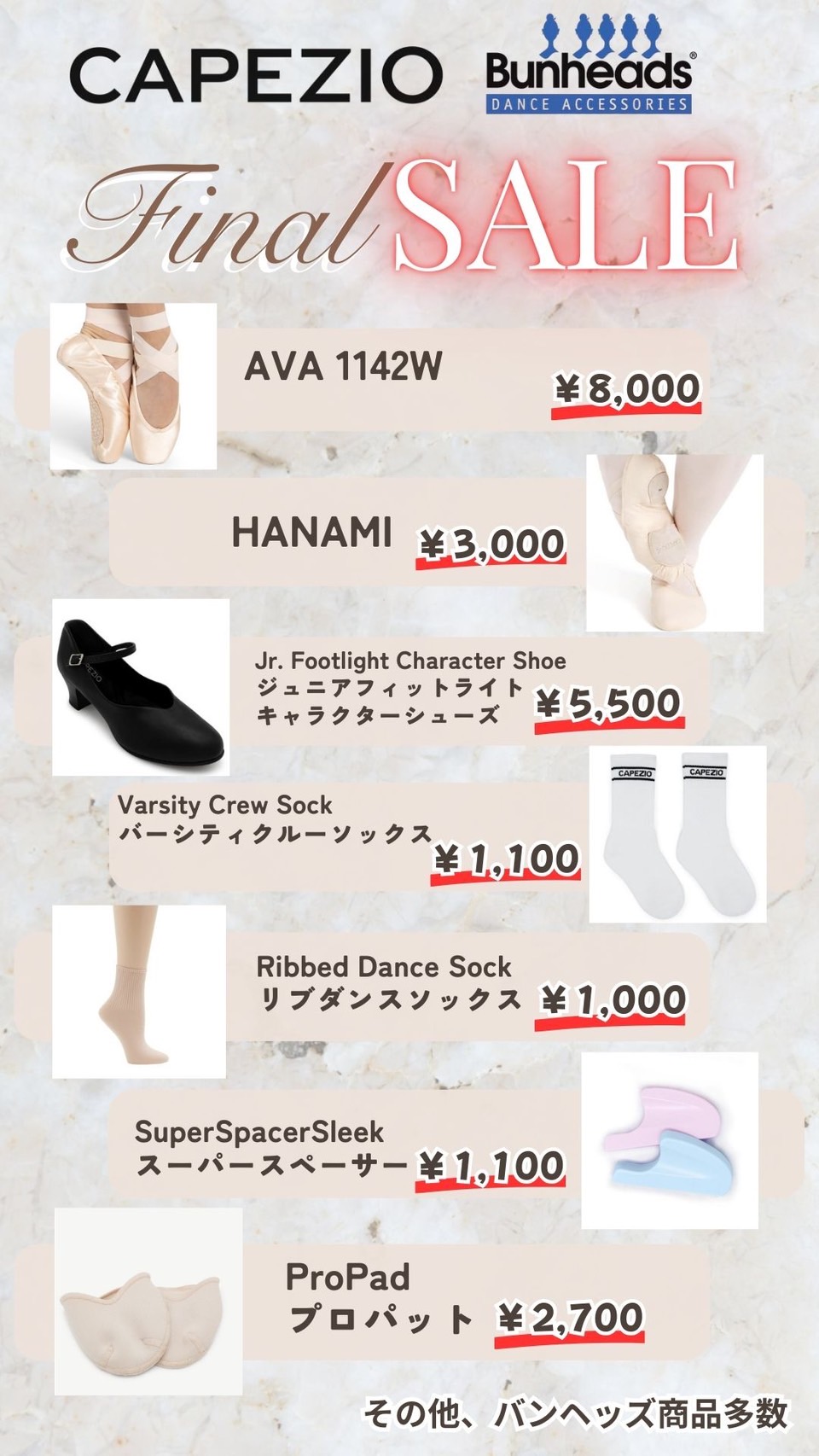 CAPEZIO・Bunheads商品のFinal SALEを開催します。