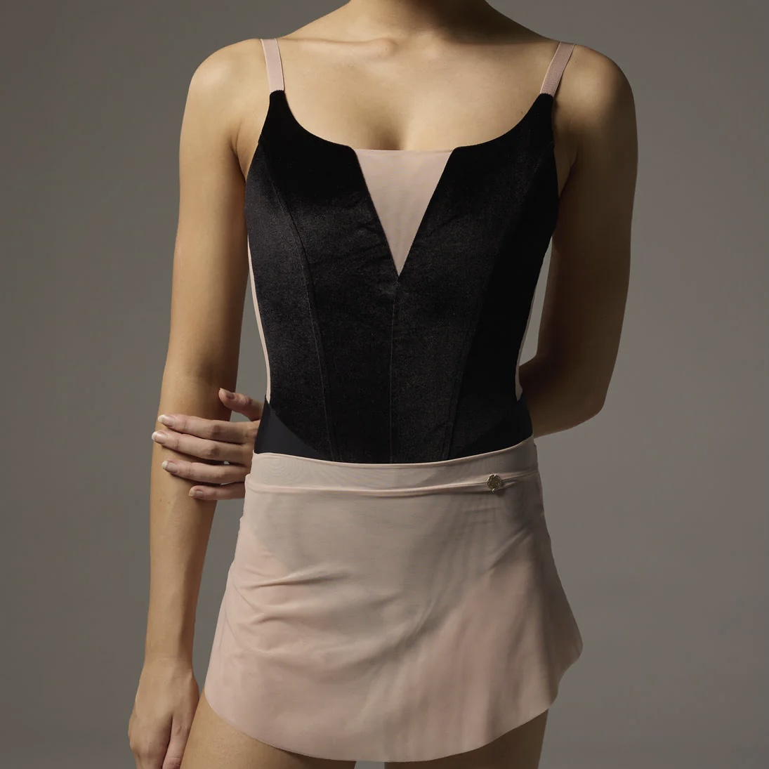 BELLAには、SUPERABILE®️生地から作られたメッシュインサートを備えた豪華なベルベットコルセットスタイルでクラシックでロマンチックなキャミソールのフロント、サポート力のあるメッシュのバックが特徴です。肩紐は調節可能なストラップになっています。