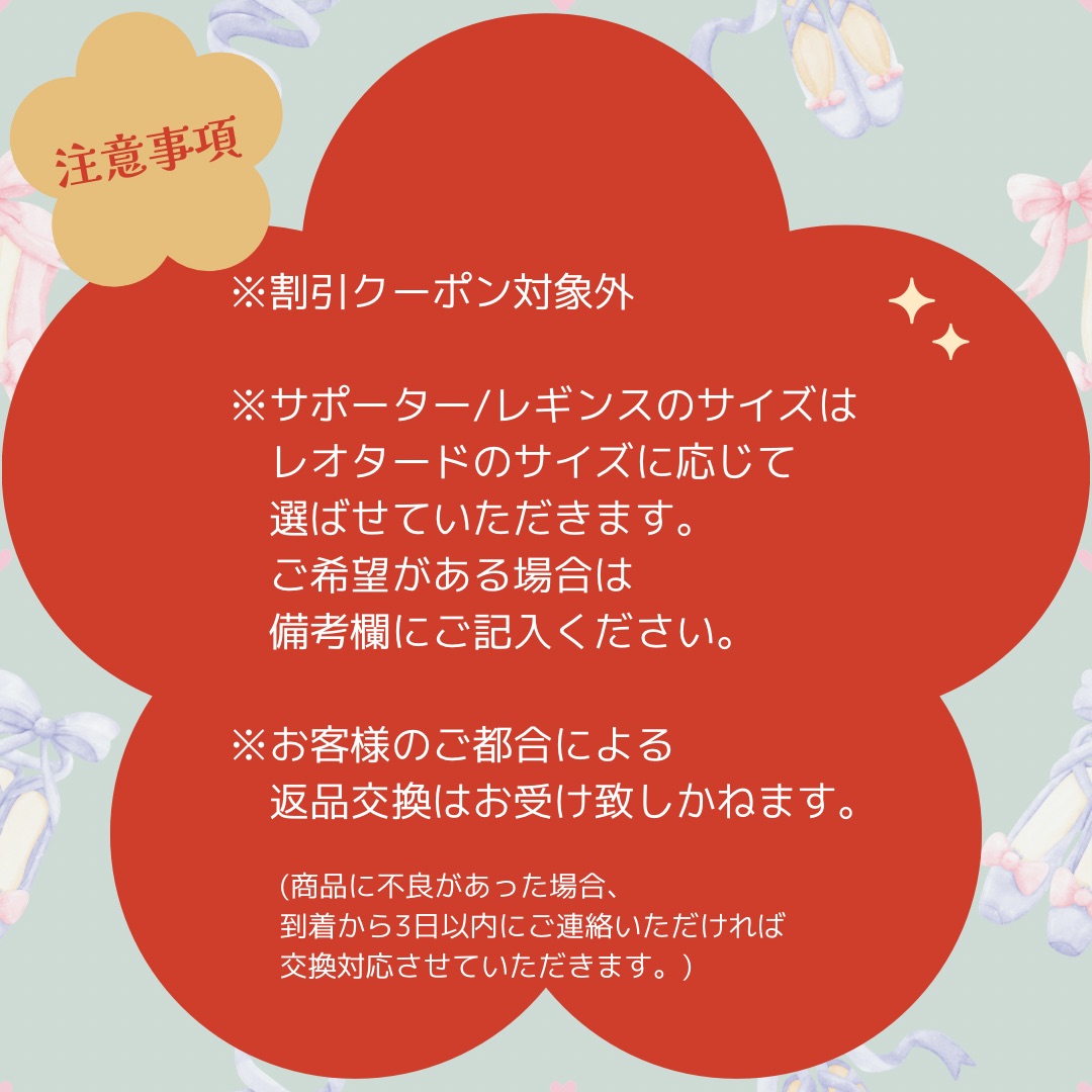 レオタードのサイズをお選びください。ご購入時にご選択いただいたサイズをもとに、