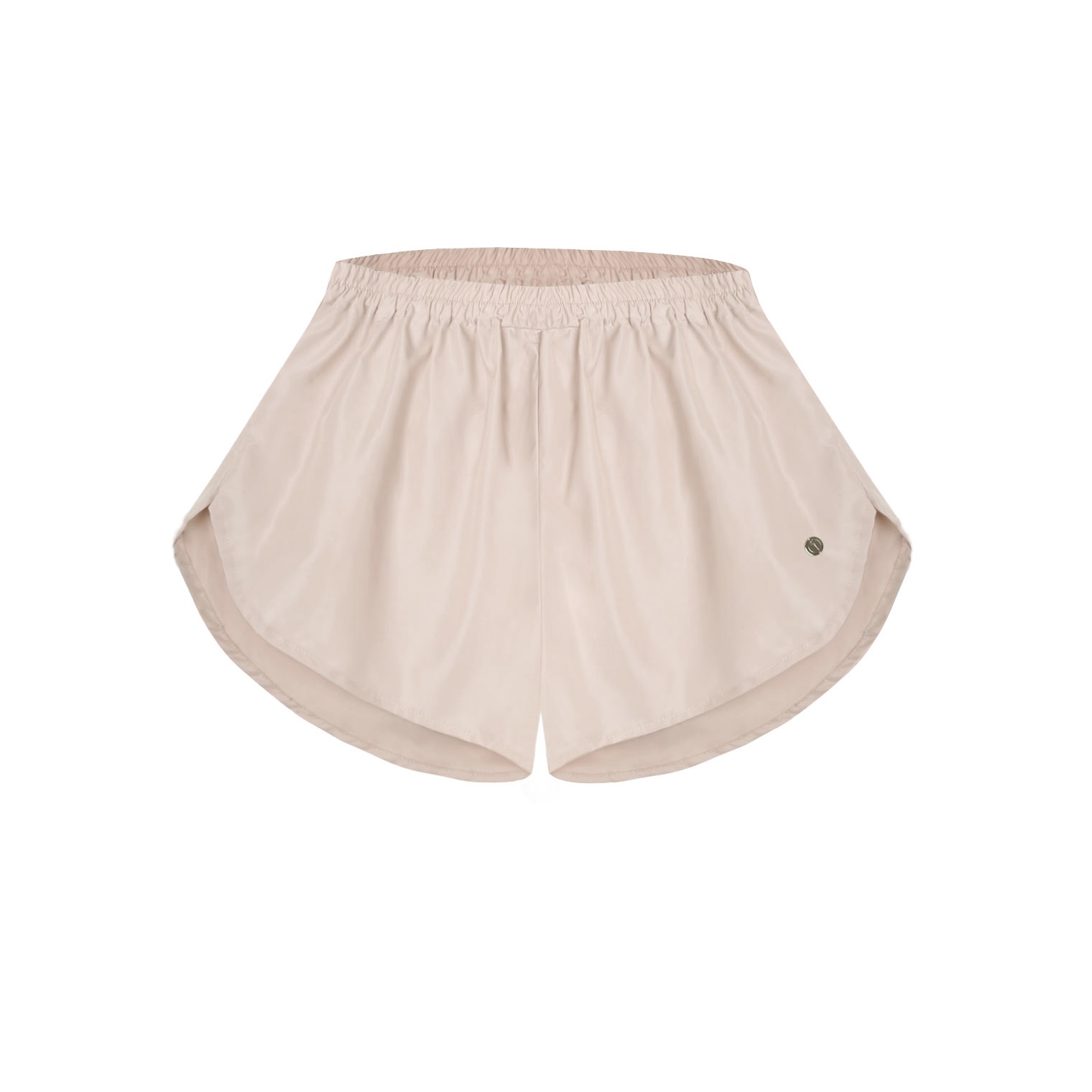 ウエスト部分にはゴムが施されており、サイドに施されたブランドロゴチャームがアクセントとなり、