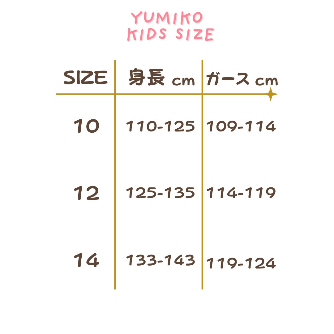14サイズ:133-143cm ガース119-124/バスト62-64.5/ウエスト56-59/ヒップ71-76